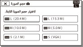 يمكن اختيار حجم للصور الثابتة التي ستقوم بتصويرها.