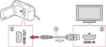 Verbind de HDMI OUT-aansluiting van de camcorder niet met de HDMI OUT-aansluiting van een extern apparaat om defecten te voorkomen.