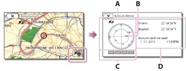 Bulunduğunuz konum, uydu haritasının merkezinde gösterilir. Uyduların yönünü (kuzey/güney/doğu/batı), uydu haritasında görüntülenen uydu simgeleriyle (