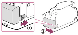 Aseta videokameran ura ja akun ulkonema kohdakkain, ja liu'uta akkua ylöspäin.