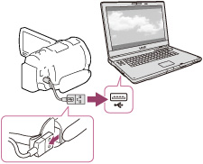 Jos ”PlayMemories Home” -ohjelmisto on jo asennettu tietokoneellesi, liitä videokamera tietokoneeseen. Videokamerasi mahdollistamat toiminnot ovat nyt käytettävissä.
