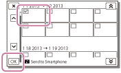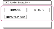 [Send to Smartphone] ei ole käytettävissä, jos videokameraan ei ole tallennettu MP4-videoita tai valokuvia.