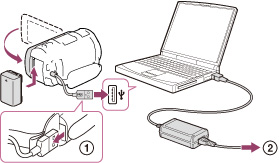 USB充电器/电源适配器(另售)将内置式USB连接线连接到墙壁插座,给电池充电。不能使用Sony