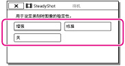 [相机/麦克风] [相机设定] [SteadyShot]。