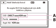 Akıllı telefonunuzda, kameranızın LCD ekranında görüntülenen SSID'yi seçin ve daha sonra kameranızın LCD ekranında görüntülenen parolayı girin.
