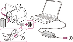 AC-UD10/napájecího adaptéru (prodává se samostatně). K nabíjení videokamery nelze používat přenosný zdroj napájení Sony