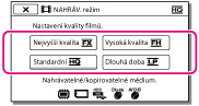 Režim nahrávání můžete nastavit tak, aby při nahrávání ve vysokém rozlišení (HD) bylo možno vybrat kvalitu videoklipu. Doba nahrávání nebo typ zařízení médií, na které je možné kopírovat snímky, se může změnit podle vybraného režimu nahrávání. ([Standardní