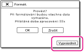 Přerušíte-li provádění funkce [Vyprázdnit] během doby, kdy je zobrazena zpráva [Probíhá zpracování...], nezapomeňte při dalším použití videokamery operaci dokončit provedením funkce [Formát.] nebo [Vyprázdnit].