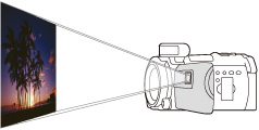 Kamkordér sa odporúča umiestniť vo vzdialenosti aspoň 0,5 m (približná vzdialenosť) od plochy, na ktorú sa majú premietať zábery.