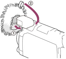 ), następnie naciągnąć osłonę przeciwwietrzną na mikrofon ciągnąc za pętelkę na osłonie przeciwwietrznej (