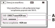 Na smartfonie wybrać nazwę SSID wyświetlaną na ekranie LCD kamery, a następnie wprowadzić hasło wyświetlane na ekranie LCD kamery.