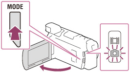Öppna LCD-skärmen och tryck på MODE för att tända
