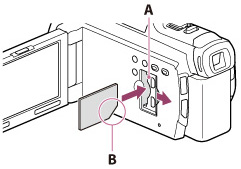 Убедитесь в правильном направлении установки карты памяти. Если принудительно вставить карту памяти в неправильном направлении, это может привести к повреждению карты памяти, слота для карт памяти или данных изображений.