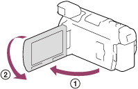Откройте панель LCD и установите ее под углом 90 градусов к видеокамере (