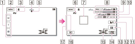 ตัวแสดงบนหน้าจอระหว่างบันทึกภาพ