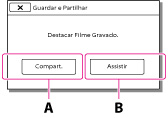 A: Selecionar [Compart.] permite que faça o carregamento do Filme de Destaque para a Internet utilizando o software “PlayMemories Home” [Detalhes].