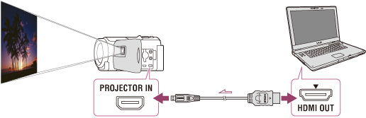 Συνδέστε την υποδοχή PROJECTOR IN της βιντεοκάμερας σε υποδοχή εξόδου HDMI της άλλης συσκευής χρησιμοποιώντας το καλώδιο HDMI (παρέχεται).