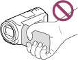 Nedržte videokameru za následující části ani za kryty konektorů.