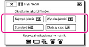 W przypadku nagrywania filmów w wysokiej rozdzielczości (HD) istnieje możliwość zmiany trybu nagrywania, który decyduje o jakości filmu. Od wybranego trybu nagrywania zależą czas nagrywania lub rodzaje urządzeń pamięciowych, na które można kopiować obrazy. ([Standard