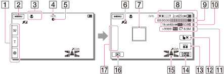 估计的录制剩余时间、录制画质、帧速率、录制模式(HD/STD)、动画尺寸(MP4)