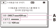 스마트폰에서 캠코더의 LCD 화면에 표시되어 있는 SSID를 선택한 다음에 캠코더의 LCD 화면에 표시되어 있는 패스워드를 입력하십시오.