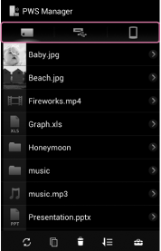 Android機器と本機を無線LANで接続し、アプリ“PWS Manager”を起動する。