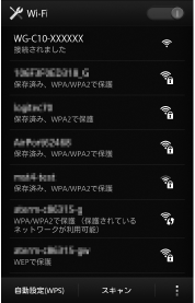 選択したSSIDの下に接続済みのメッセージが表示され、画面上部に(アンテナアイコン)が表示されたら接続完了です。