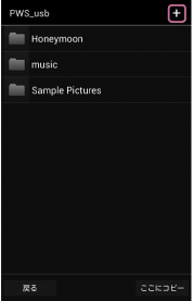 コピー先のデバイスのファイルやフォルダーの一覧が表示されます。