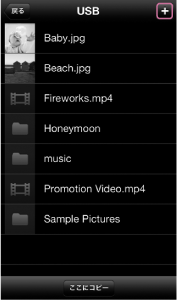 コピー先のデバイスのファイルやフォルダーの一覧が表示されます。