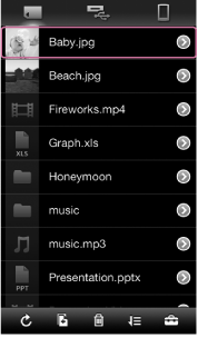 - 本アプリで再生/表示に対応していないファイルフォーマットを、他のアプリから開くことができます。詳しくは、「アプリを選んで再生/表示する(iOS機器)」をご確認ください。ただし、対応アプリがインストールされていない場合は、「このファイルを開くことはできません。」のメッセージが表示されます。