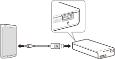 本機のUSB A ポートとお使いのUSB機器のUSB microBポートを、付属のUSBケーブルで接続します。