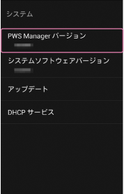 アプリ“PWS Manager”の現在のバージョンが表示されます。