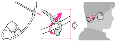 調整バンドを取り付けた“ウォークマン”を装着したら、調整バンドをおさまりの良い位置に調整してください。