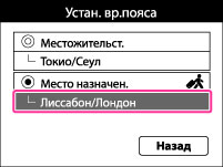 Изменение установки часового пояса