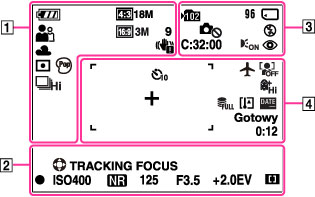 Ikony są wyświetlane na ekranie, aby wskazywać status aparatu.