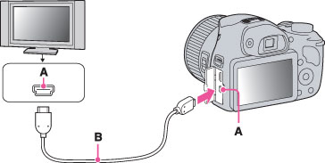 本機側はHDMIマイクロ端子、テレビ側はテレビの端子に合ったタイプのHDMIケーブルをお使いください。