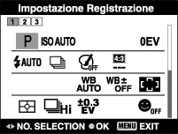 (Modo di richiamo memoria) dopo aver completato le impostazioni di ripresa, viene data la priorità alle impostazioni registrate e le impostazioni originali potrebbero diventare invalide. Controllare gli indicatori sullo schermo prima della ripresa.