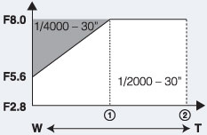 Pode selecionar uma velocidade do obturador de 1/4000 para 30 segundos.