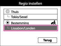 Hiermee kunt u de camera gebruiken met de tijd ingesteld op de tijd van uw bestemming. Stel het gebied van de bestemming in.
