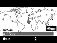 تستخدم الكاميرا مضبوطاً إلى الوقت في وجهتك المقصودة. قم بضبط المنطقة المقصودة.