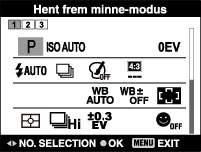 (Hent frem minne-modus) etter fullføring av opptaksinnstillingene, prioriteres de registrerte innstillingene og de originale innstillingene blir ugyldige. Kontroller indikatorene på skjermen før opptak.