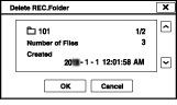 Ak nejaký priečinok obsahuje zábery chránené proti vymazaniu alebo súbory, ktoré v tomto fotoaparáte nie je možné zobraziť, zábery iné ako uvedené sa vymažú a daný priečinok sa zachová.