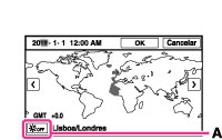 Toque no ícone Horário de verão (A), depois selecione Horário de verão Ligado/Desligado.