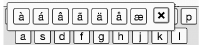 Tap [?123] to display the symbol keyboard. Tap [Alt] to switch to additional characters. Tap [ABC] to return to the alphabetical keys.