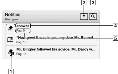 To search, sort and view all annotations across all books, use the [Alle notities] application. See Details.