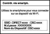 Raccordez votre smartphone à l’appareil photo en vous conformant aux informations qui s’affichent sur l’écran lorsque l’appareil photo est prêt à établir la connexion. Les méthodes de connexion varient selon le type de smartphone. [Détails] [Détails]