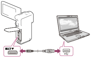 Lorsque les instructions à l'écran vous invitent à connecter le caméscope à un ordinateur, raccordez le caméscope à votre ordinateur à l'aide du câble USB (fourni).