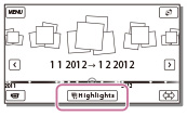 [Highlight-Einstellung] auswählen, während der Camcorder Highlight-Szenen abspielt.-