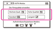 wird auf dem Symbol eines Mediums angezeigt, wenn ein Film, der im ausgewählten Aufnahmemodus aufgezeichnet wurde, nicht auf dieses Medium kopiert werden kann.Aufnahmemodus und Medieneinheiten, auf die Bilder kopiert werden können