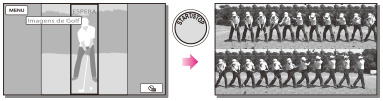 No ecrã [Imagens de Golf], enquadre o motivo na grelha no centro do ecrã e, de seguida, prima START/STOP imediatamente após o motivo ter dado uma tacada.